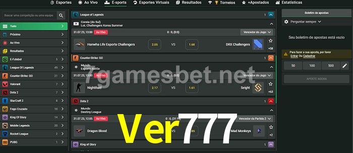 O Ver777 oferece uma grande seleção de opções de apostas em e-sports com probabilidades competitivas